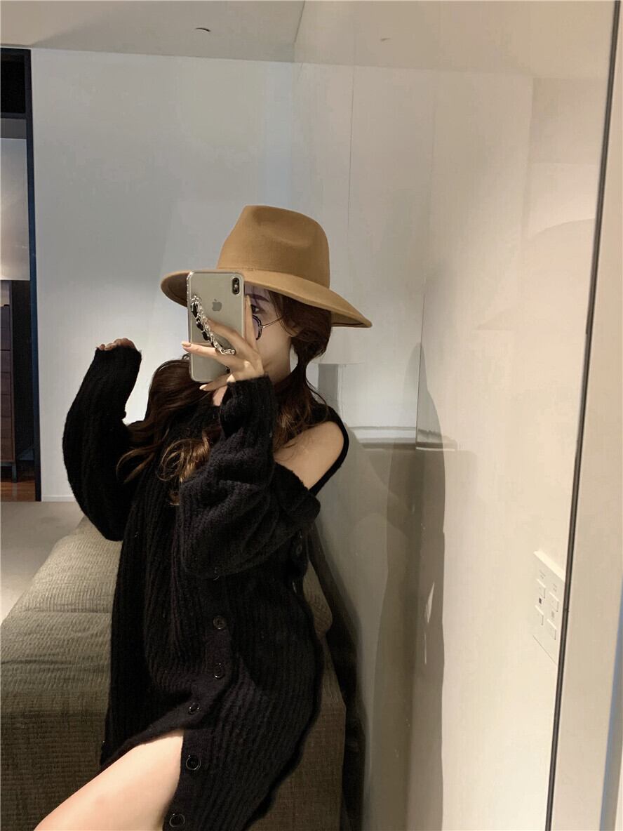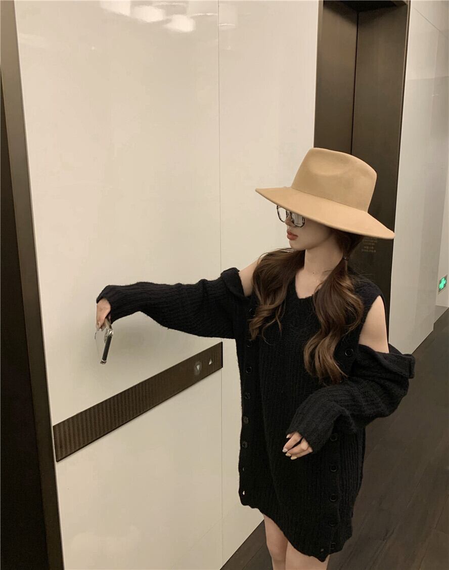 セーター ドレス ストラップレスルーズニットレディースオータムウィンターブラックトップス 秋物 冬物 ブラックストロベリース36073344034