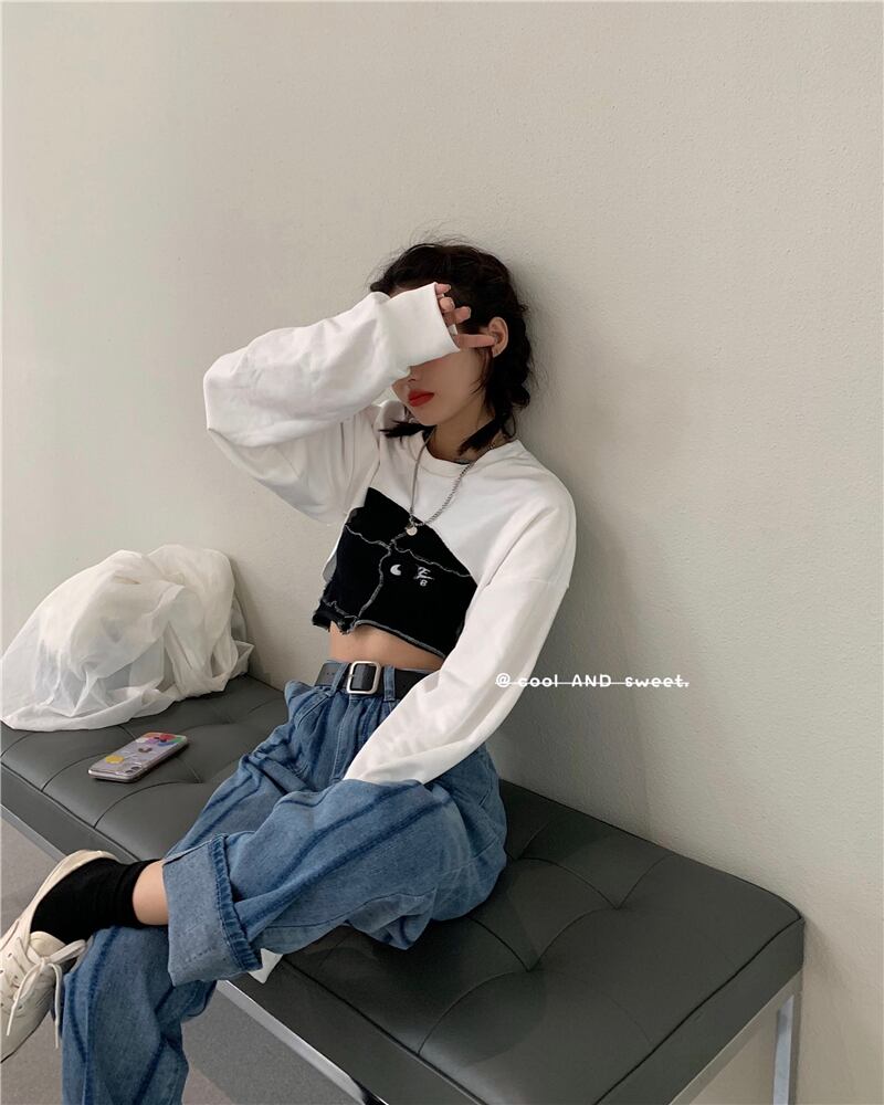 スウェット レディースルーズスタイルショートブラックプルオーバー ブラウス スプリング 春物 ブラックストロベリース58274222822