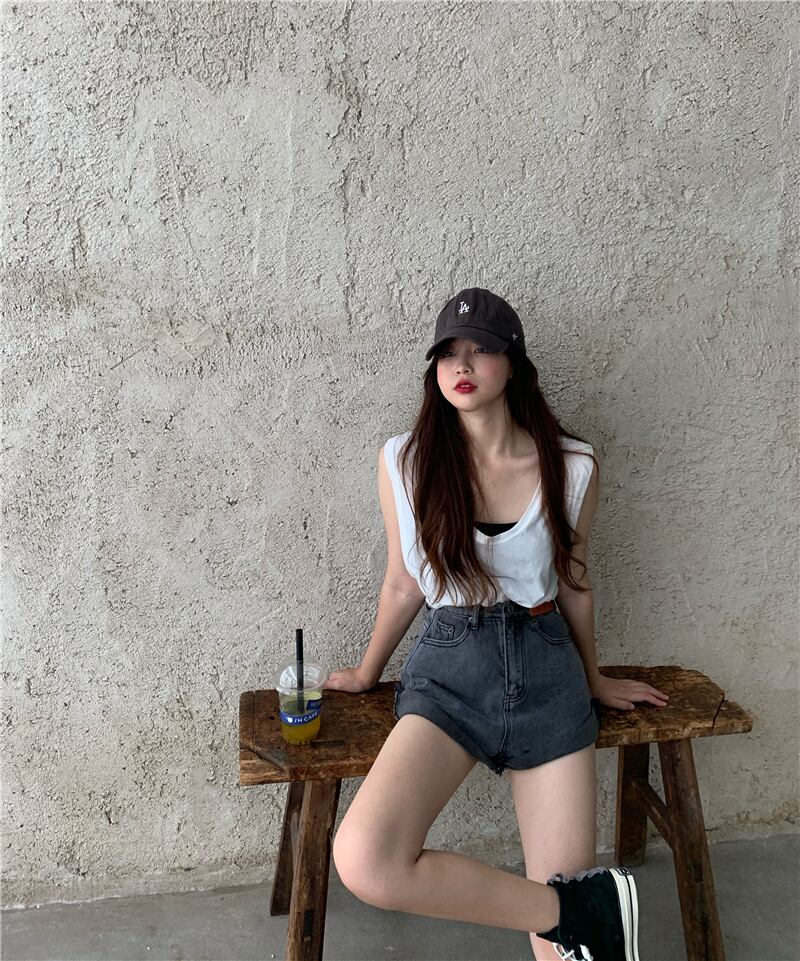 ショーツ サマー薄手パンツ グレーハイウェストウェストルーズ 夏物 ブルマー ブラックストロベリース67563713693
