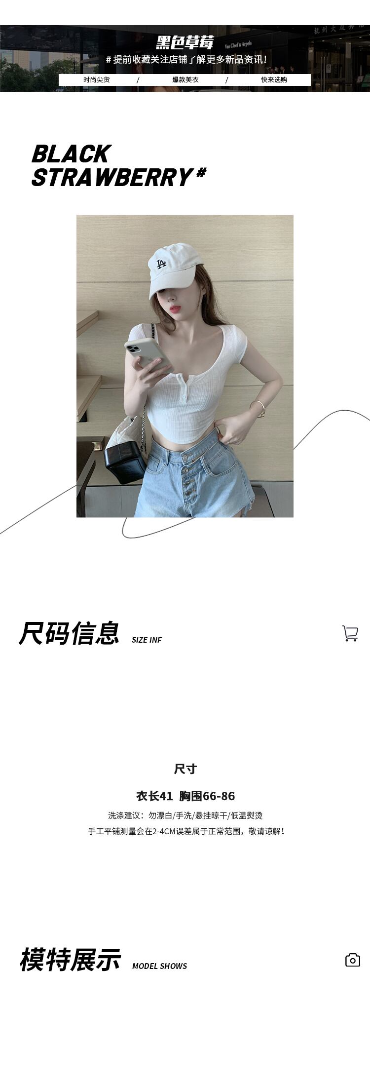 ニットTシャツ レディースサマーハイウェストウェストショートホワイトトップス 夏物 ブラックストロベリース73989516638
