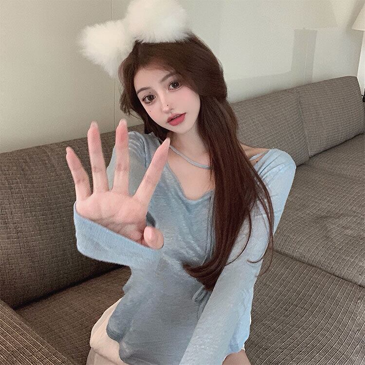 Tシャツ ブルー薄手トップス サマー ロング 夏物 ブラックストロベリース41774157512