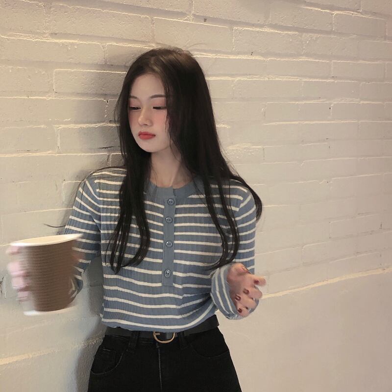 ストライプニットショートセーター スプリングスタイルトップス ロング 春物 ブラックストロベリース63616237729