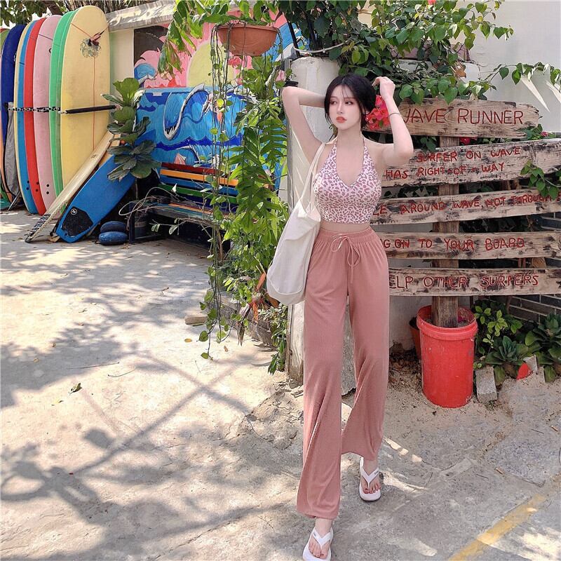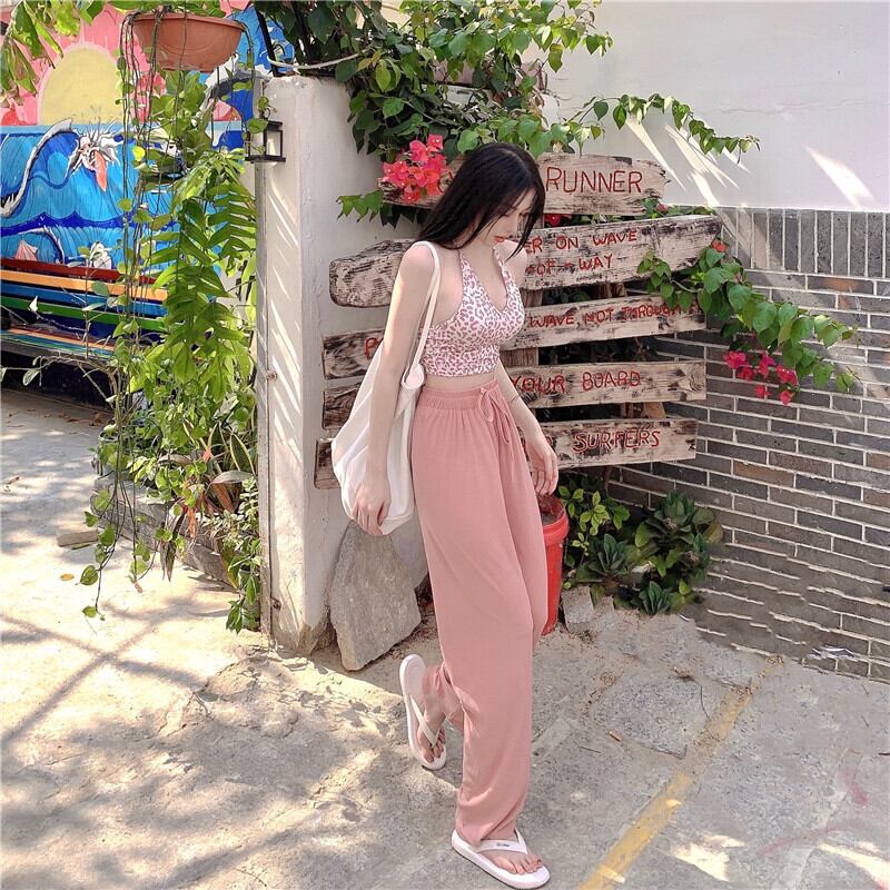 色:ピンクのヒョウのホルターネック,ピンクのズボン