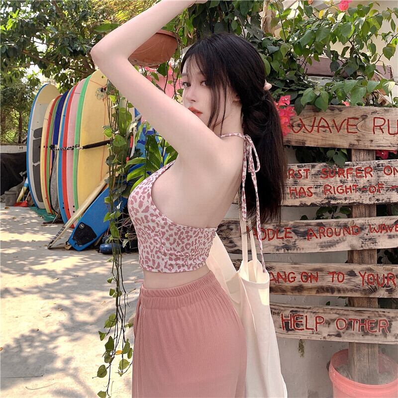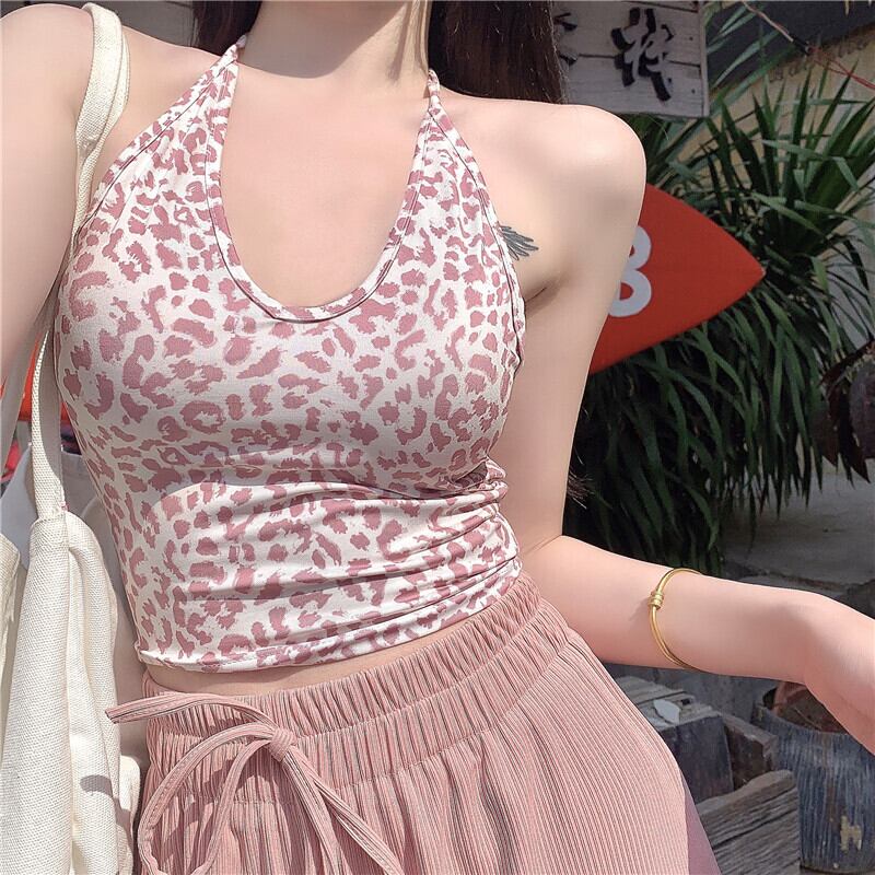 サマーレオパードプリント柄ショートホルターバックジャケット ピンク 夏物 ヨーロピアン ブラックストロベリース67011407314