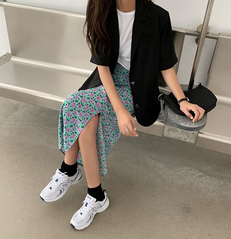 フローラルスカート ハイウェスト薄手スプリング 春物 花柄 ブラックストロベリース46426666561