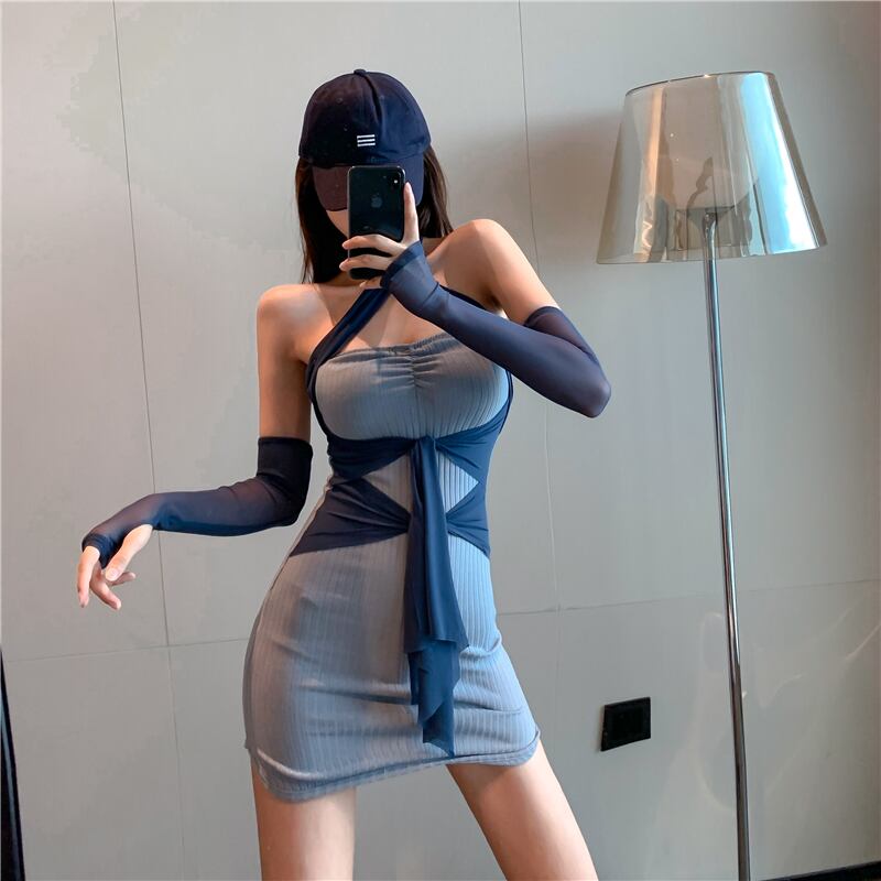 ニットドレス ストラップレスショートスカート スプリングウェストスリム 春物 ブラックストロベリース84343673995