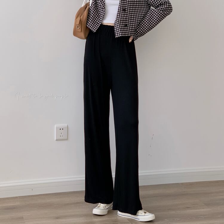 パンツ ハイウェストウェストカジュアルスプリングブラックルーズ 春物 ブラックストロベリース75156181547