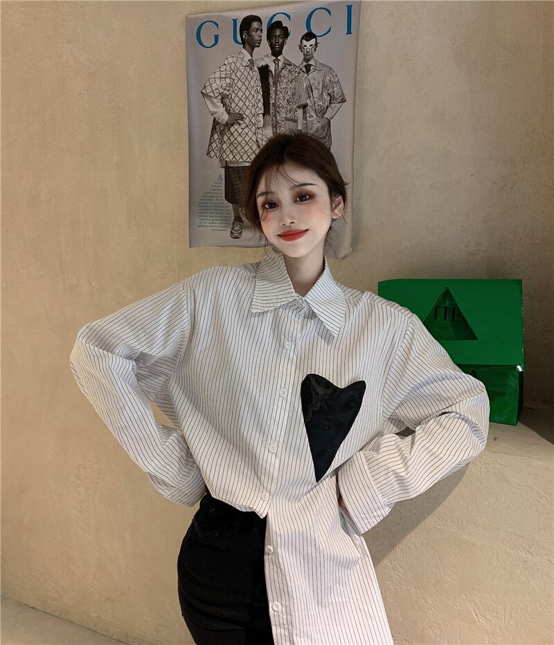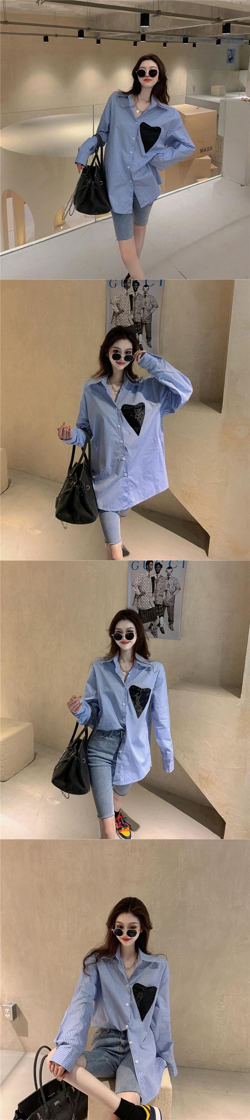 ルーズスタイルシャツ ジャケット スプリングホワイトストライプトップス ロング 春物 ブラックストロベリース15944272397