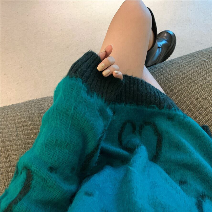 セーター レディースルーズブルーVネックスタンダードニットスプリングトップス レトロ 春物 ブラックストロベリース92263174506
