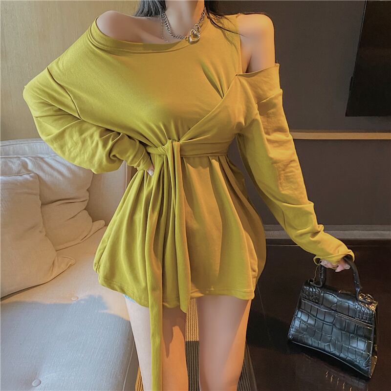 Tシャツ シャツ ルーズスタイルストラップレススプリングウェストホワイトトップス ロング 春物 ブラックストロベリース66908977113