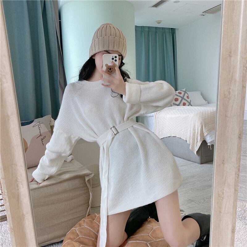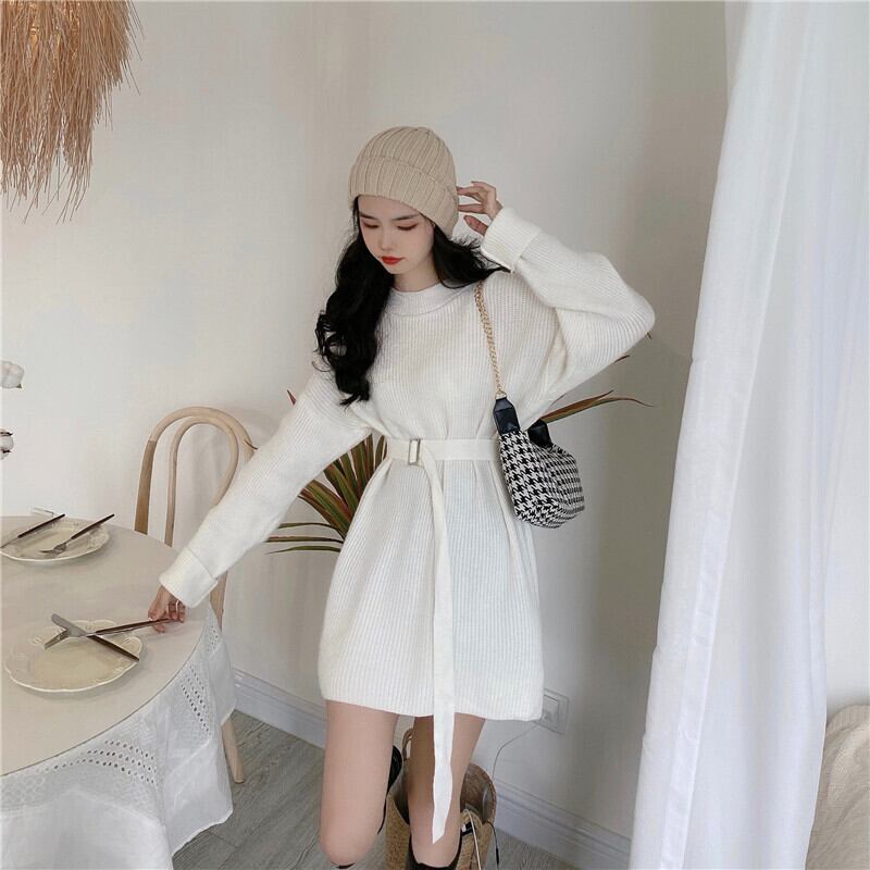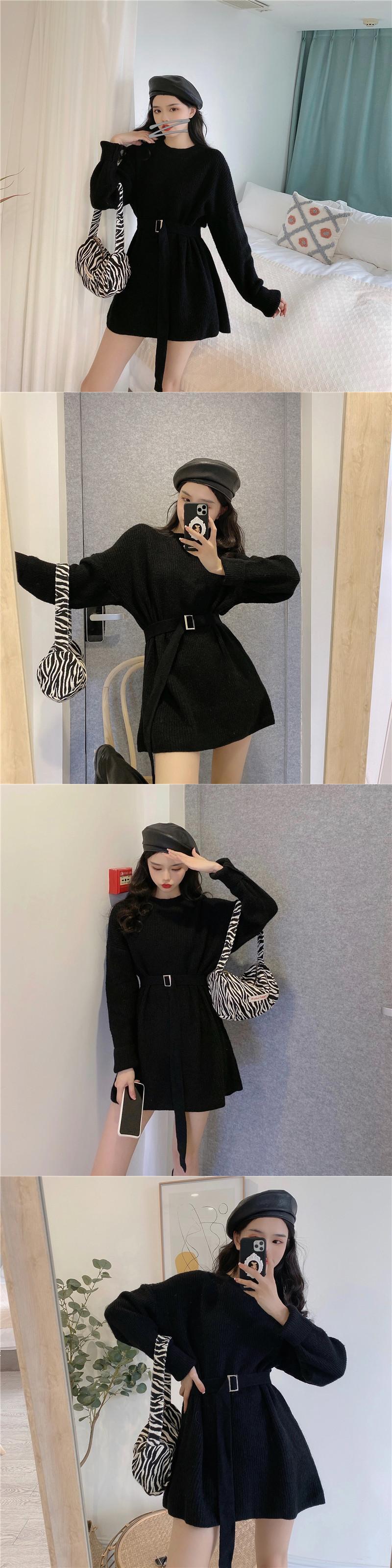 セーター ドレス ホワイトウェストショートスカート スプリングニット 春物 ブラックストロベリース94071510569