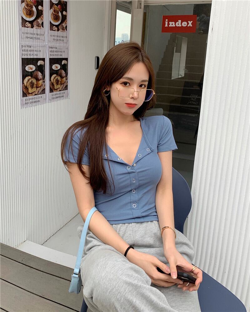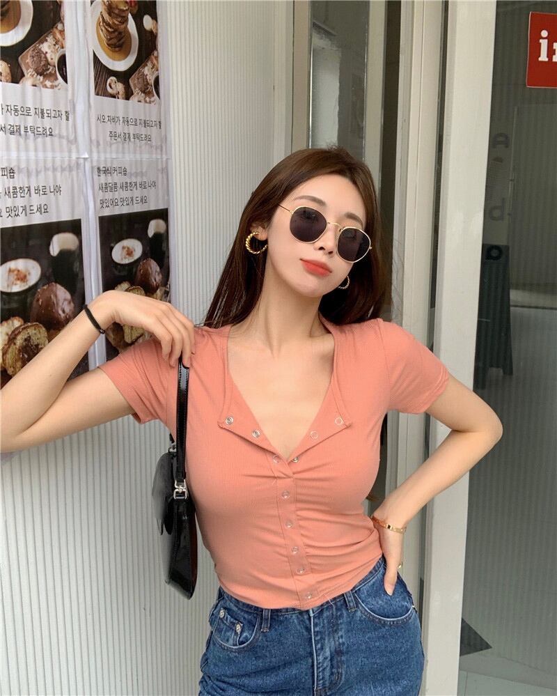 ニットTシャツ サマースリムショートブラック半袖スリーブトップス ハーフスリーブ 夏物 ブラックストロベリース96651003537