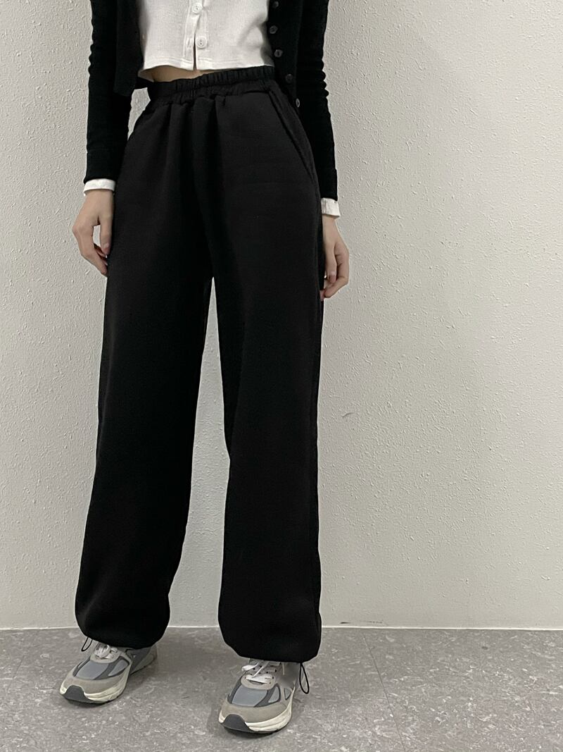 パンツ ハイウェスト薄手スプリングルーズグレーギャザー 春物 ブラックストロベリース71573601607