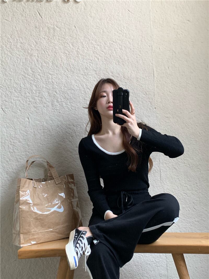 ニット スリムホワイトスプリング コルセット 春物 ブラックストロベリース12307853788