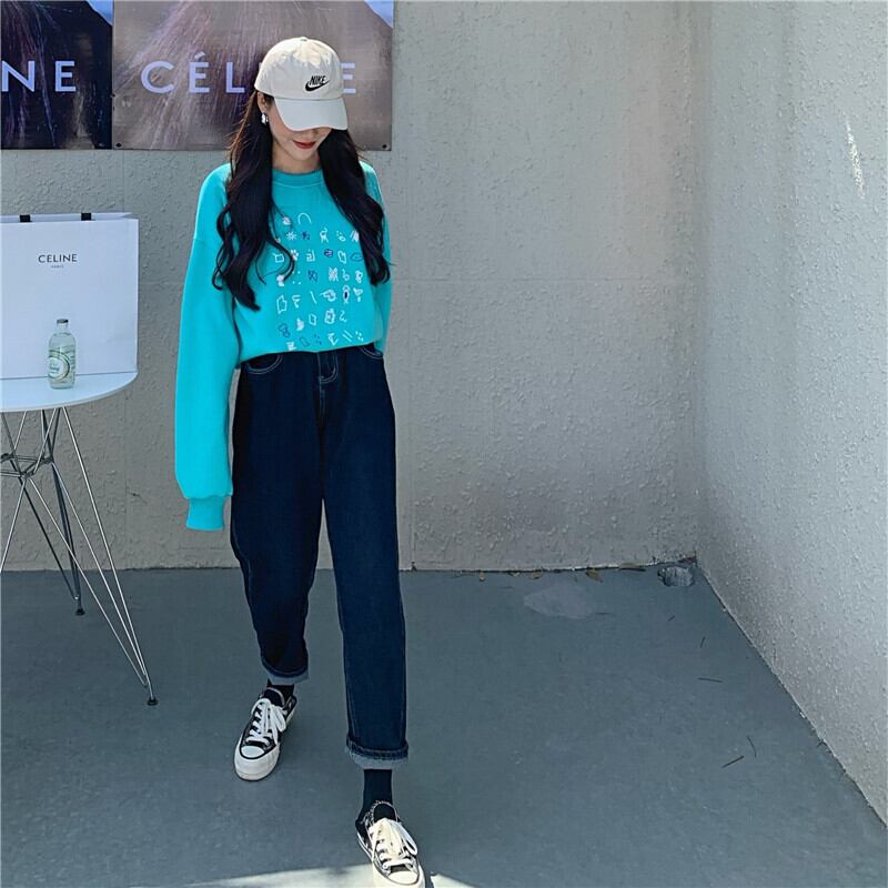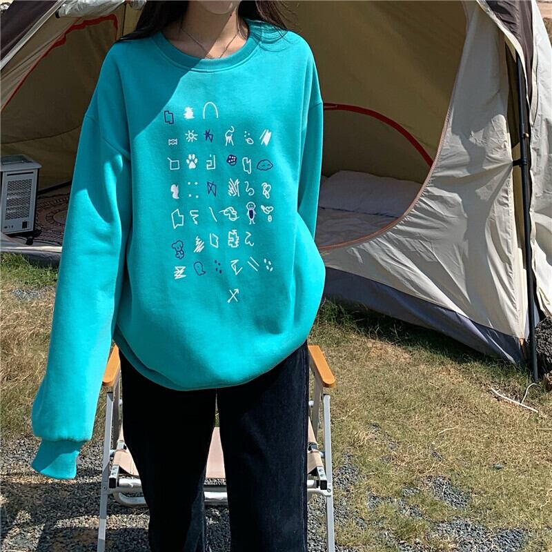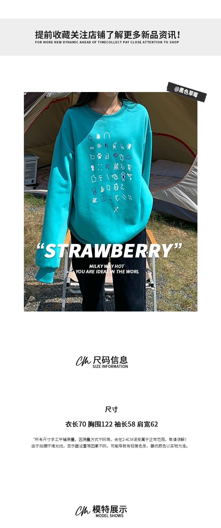 セーター レディースルーズブルースタンダードスタイルラウンドネックプルオーバー トップス スプリング レトロ 春物 Oネック ブラックストロベリース56417615675
