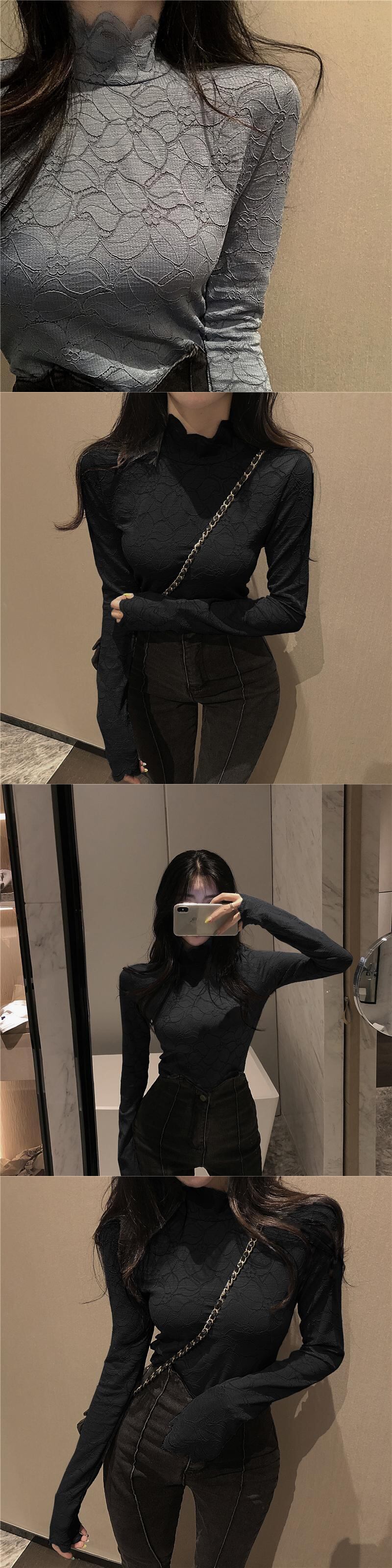 レースシフォンシャツ スタイルスプリングブラックトップス ロング 春物 ブラックストロベリース18451769906