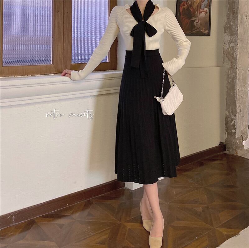 ニット ホワイトシャツ スプリングスタイルセーター トップス リボン 春物 ブラックストロベリース86169027066