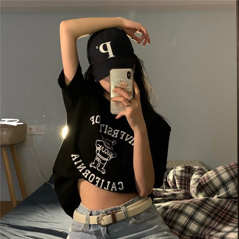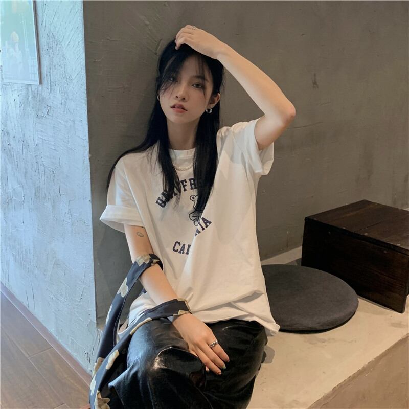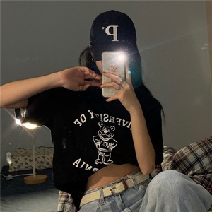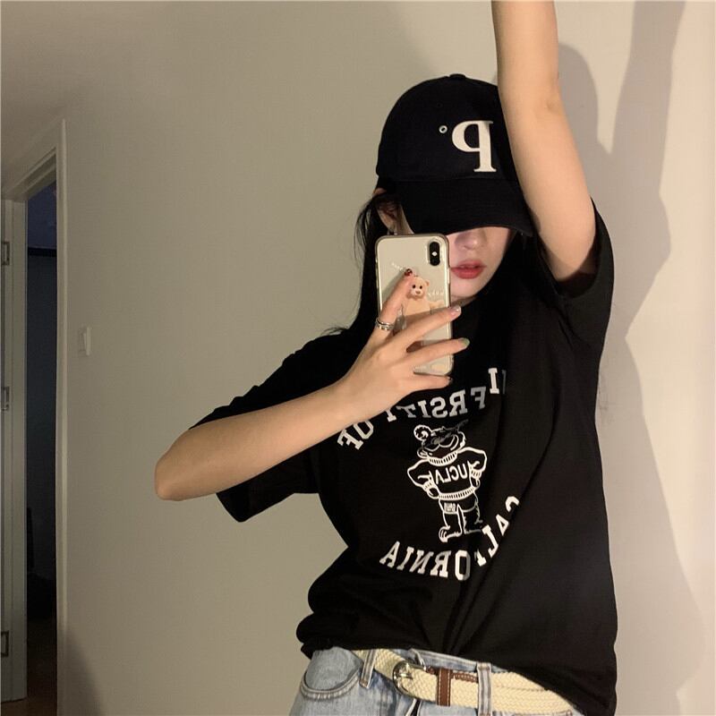 Tシャツ ルーズブラックプリントトップス サマー 夏物 ブラックストロベリース67287827006