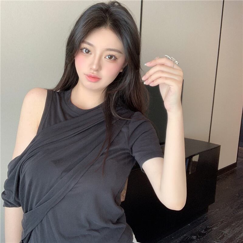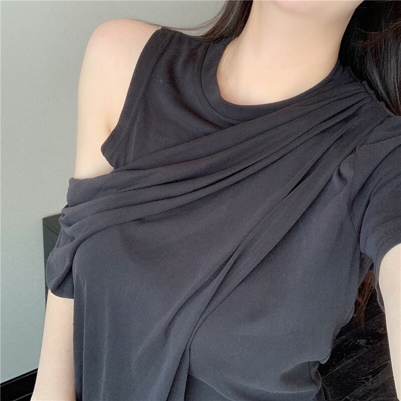 Tシャツ ルーズスタイルストラップレスブラックトップス サマー 夏物 ブラックストロベリース90547459735
