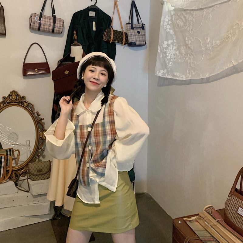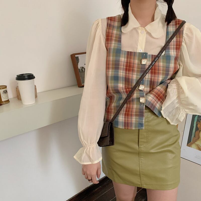 色:シャツ,ベスト,レザースカート