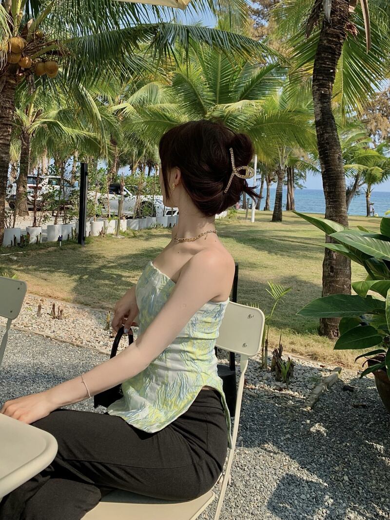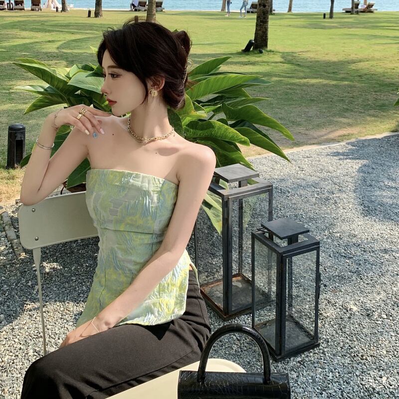 スタンダードジャカードトップス サマーストラップ ショートブラウス レトロ 夏物 ブラックストロベリース65547286664