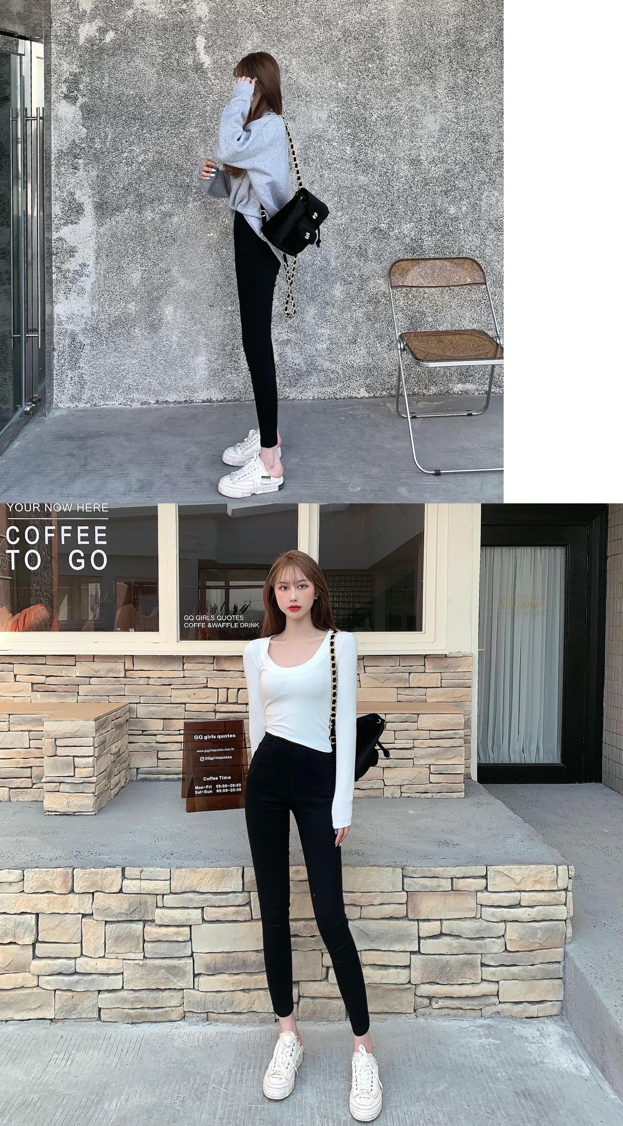 レギンス ベルベットブラックパンツ ハイウェストウェスト ウィンター 冬物 ブラックストロベリース82644055141