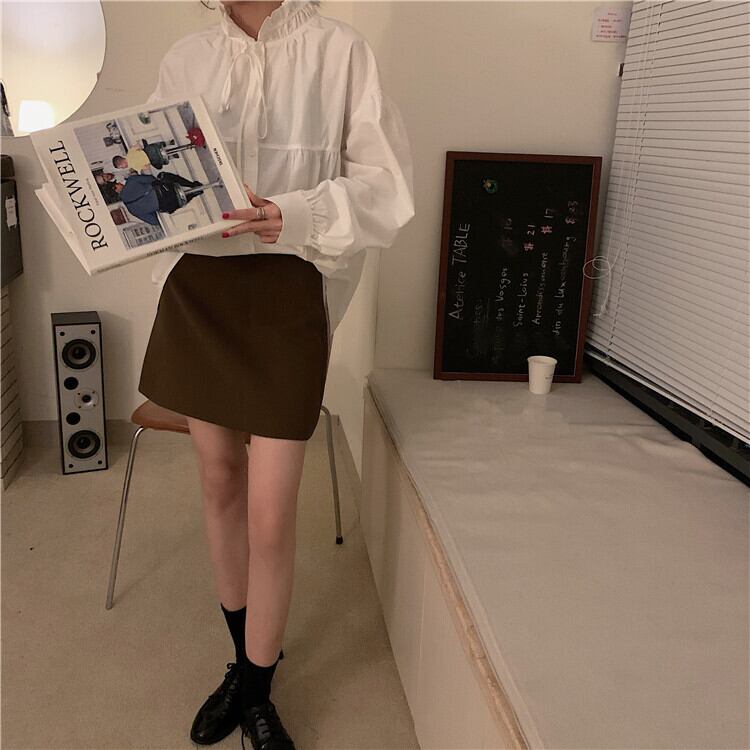 シャツ スプリングホワイトルーズトップス ロング 春物 ブラックストロベリース26168584974