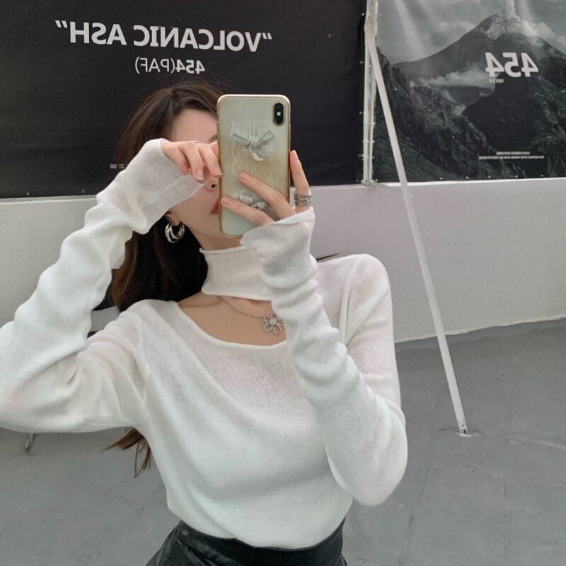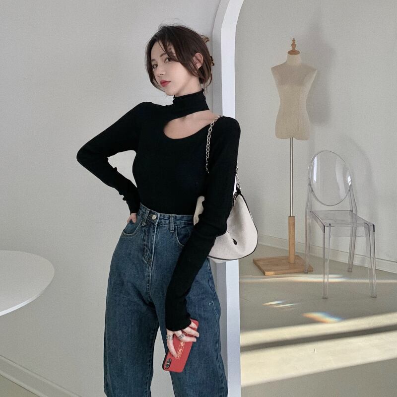 ニットセーター ブラックストラップレスシャツ スプリングトップス 春物 ブラックストロベリース12867237495