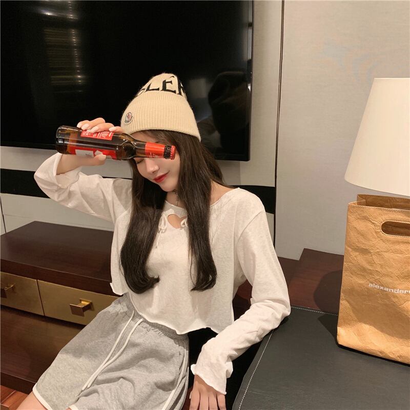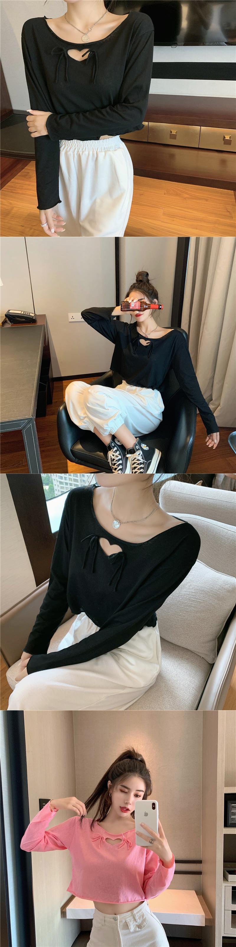 Tシャツ シャツ ショートクロップドルーズスプリングラウンドネックトップス ロング ピンク 春物 Oネック ブラックストロベリース41350519962