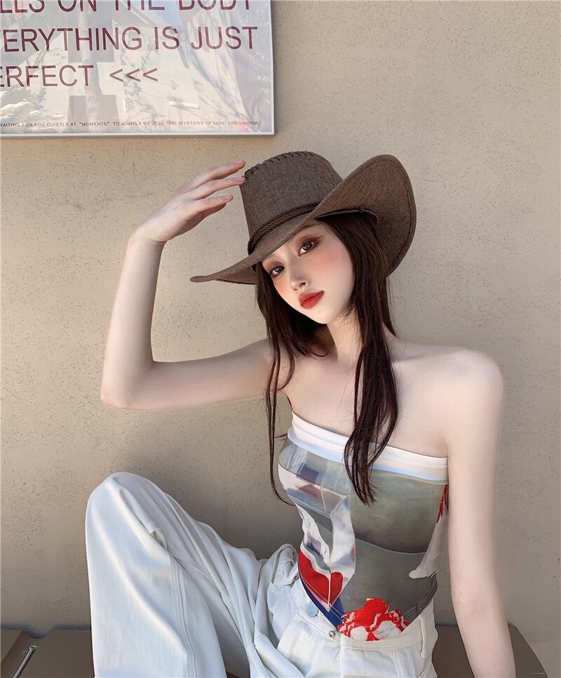 スタンダードプリントトップス サマーストラップレスショートジャケット レトロ 夏物 ヨーロピアン ブラックストロベリース72242194890