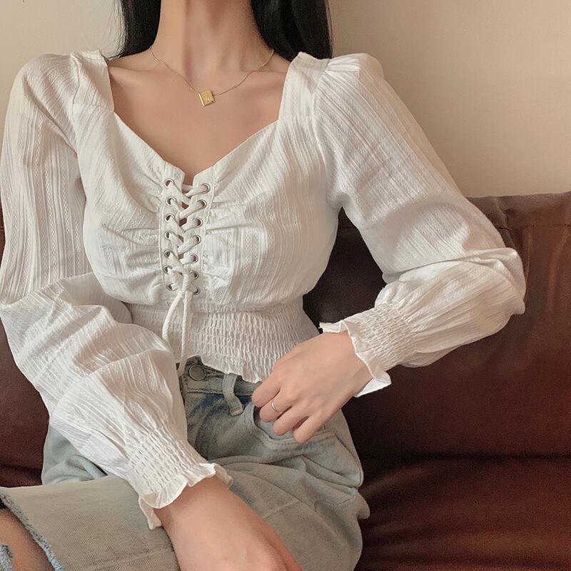 ショートシャツスリムスプリングホワイトトップス ロング 春物 ブラックストロベリース35390874011