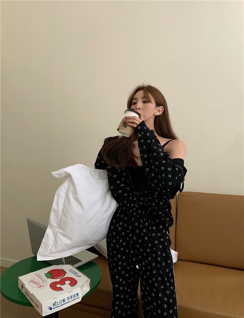 レディーススタイルセーター カーディガンジャケット ハイウェストウェストワイドレッグパンツ スプリング 春物 ワイドパンツ ブラックストロベリース61204451077
