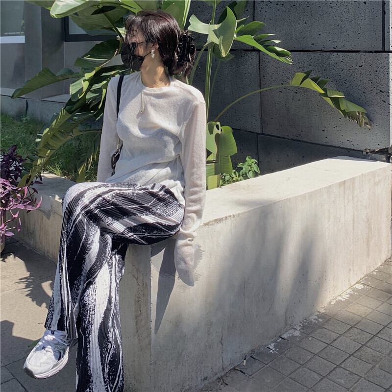 パンツ ルーズスプリングプリーツハイウェスト薄手 春物 ブラックストロベリース92458025690