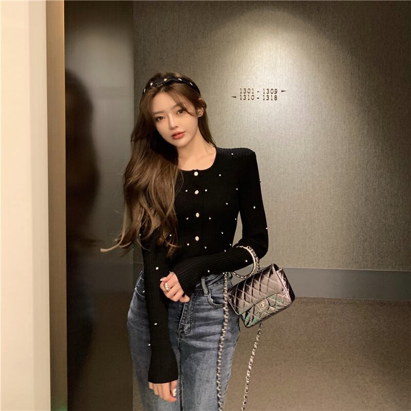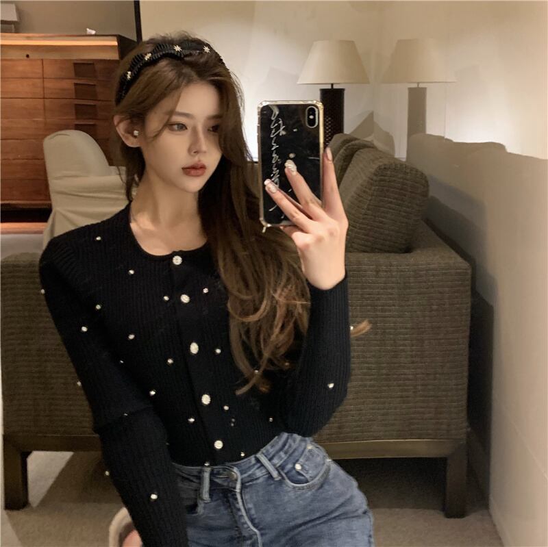 ニット ブラックセーター トップス スプリングスタイルカーディガンジャケット 春物 ブラックストロベリース98310016297