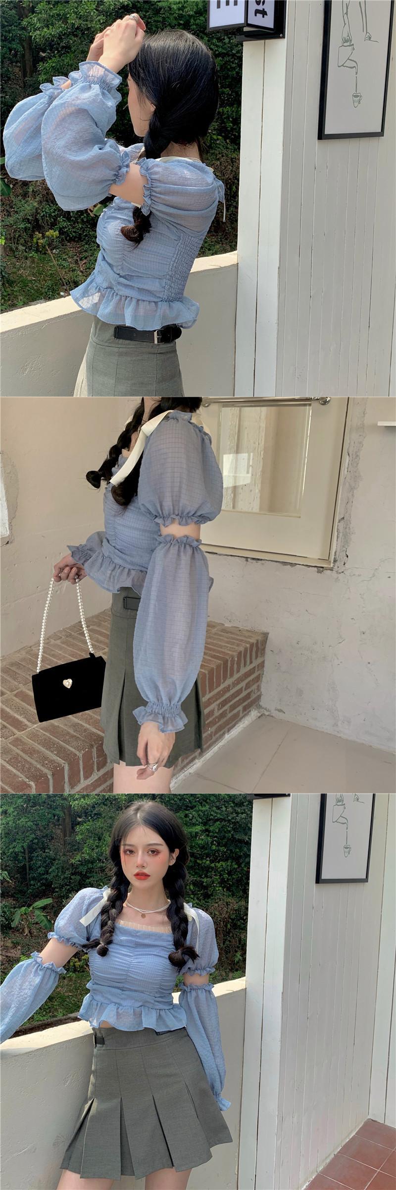 レースシフォンシャツ レディースサマー薄手リボンショート ロング 夏物 ブラックストロベリース89615604890