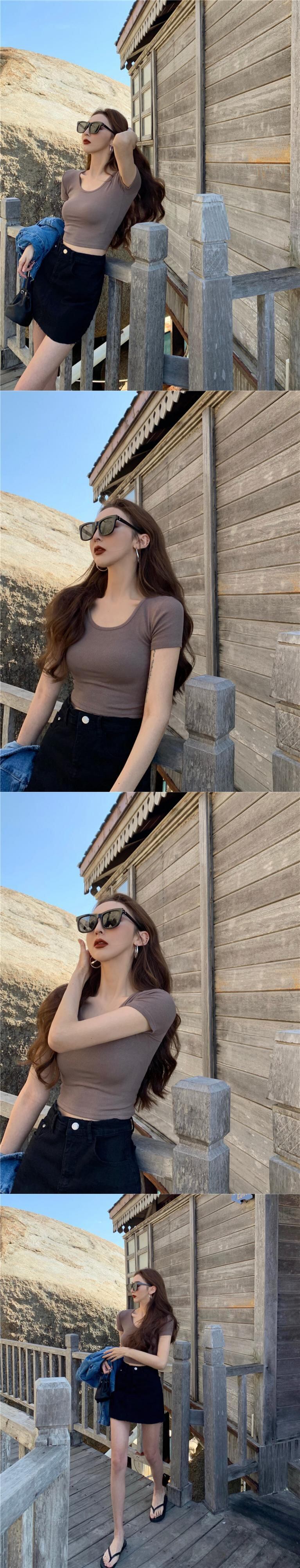 Tシャツ スリムショートハイウェストウェストホワイトトップス スプリングサマー 春物 夏物 ブラックストロベリース41117052285