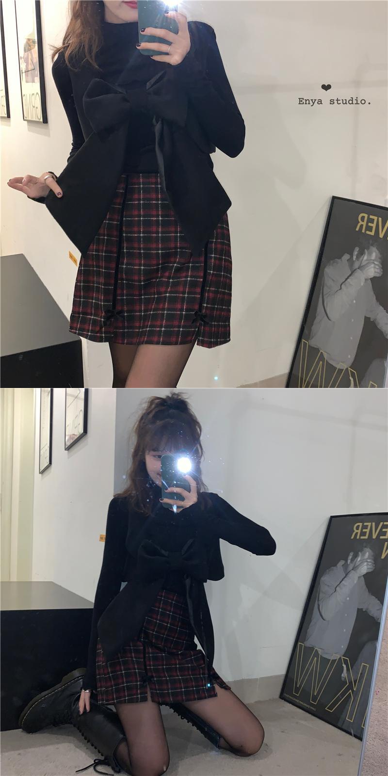 リボンショートスタンダードジャケット スプリングブラック レトロ 春物 ブラックストロベリース54627677203