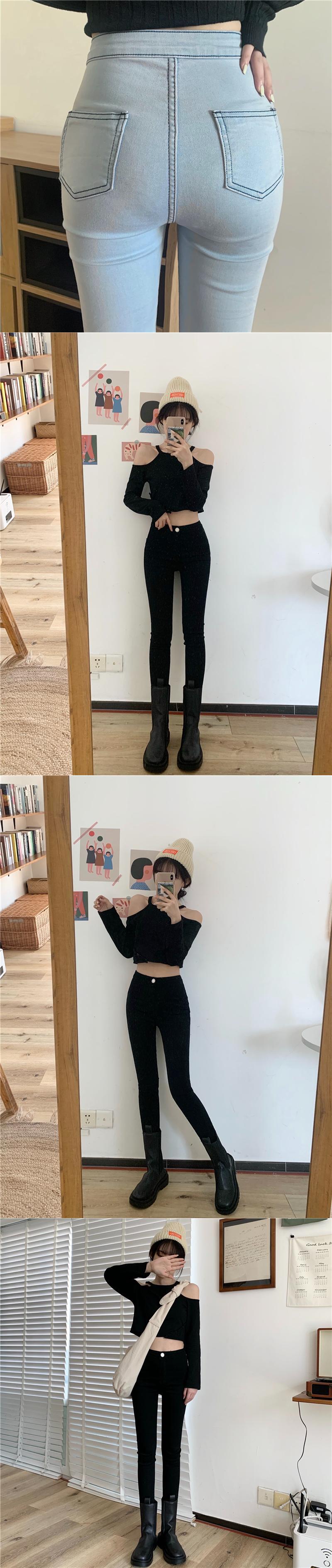 ジーンズ フィットスリムパンツ スプリングブラックウェスト薄手 春物 ブラックストロベリース95617178080