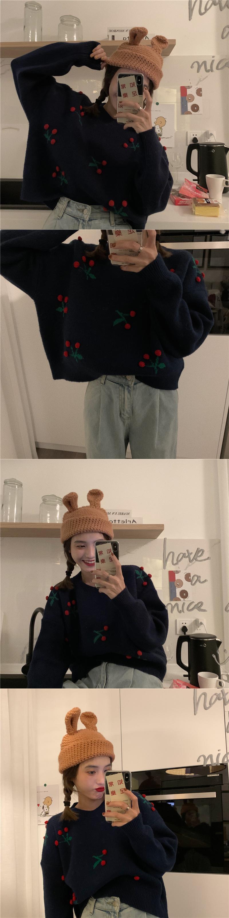 セーター スタンダードルーズショートニットジャケット スプリングレッドトップス レトロ 春物 ブラックストロベリース83257167229