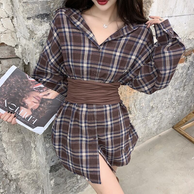 格子柄スプリングトップス ロング ブラウス 春物 ブラックストロベリース47958838255