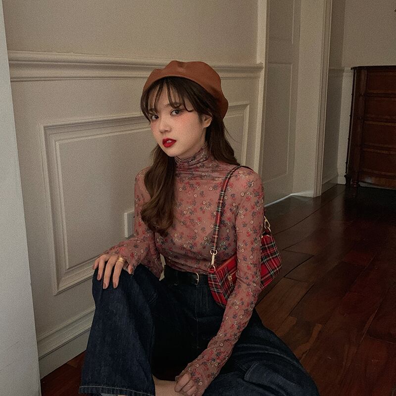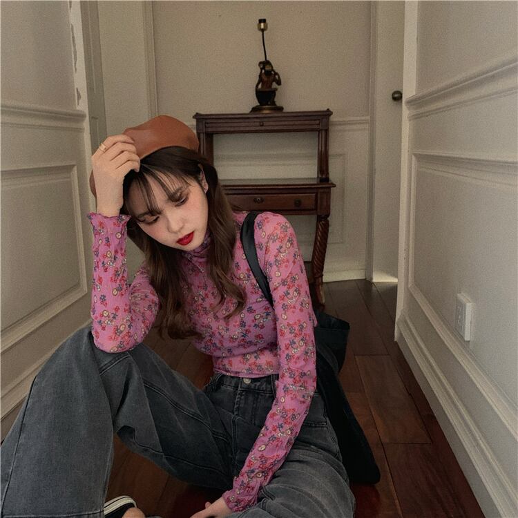 フローラルTシャツ シャツ スリムスプリングレッドスタイル ロング 春物 タイツ ストッキング ソックス 花柄 ブラックストロベリース46165242241