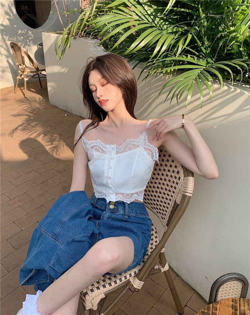 レースサマースタンダードショートホワイトジャケット レトロ 夏物 ブラックストロベリース92039034666