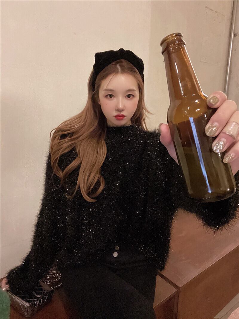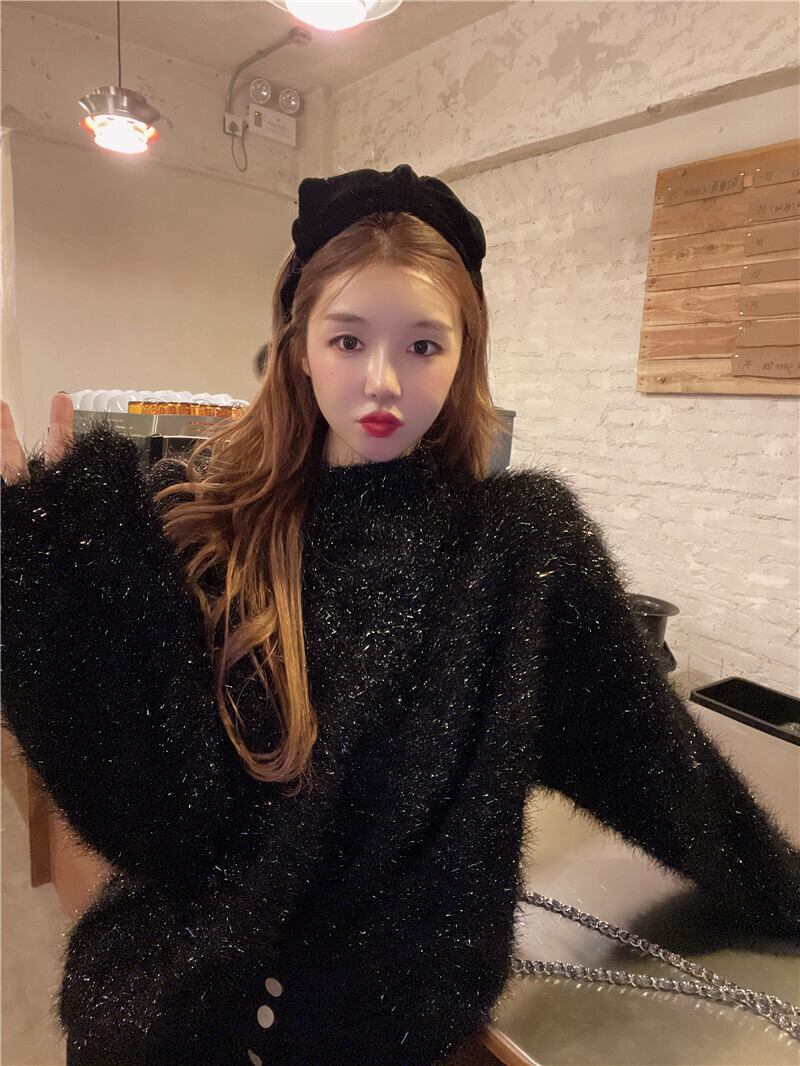 ウールセーター コート ブラックスタイルニットスプリングオータムトップス 春物 秋物 ブラックストロベリース58520184227