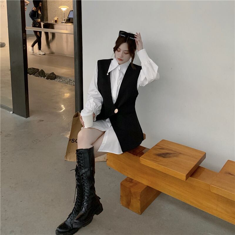 色:白のシャツ,黒のベスト