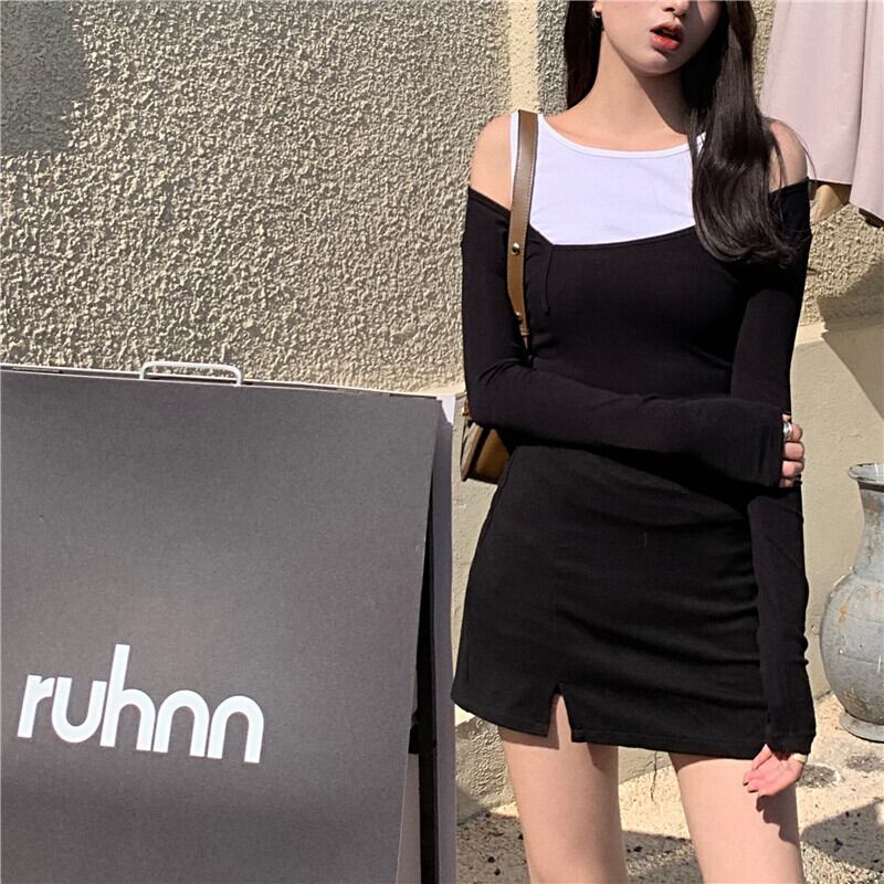 Tシャツ シャツ ブラウス スプリング ロング 春物 オフショルダー ブラックストロベリース67961289800