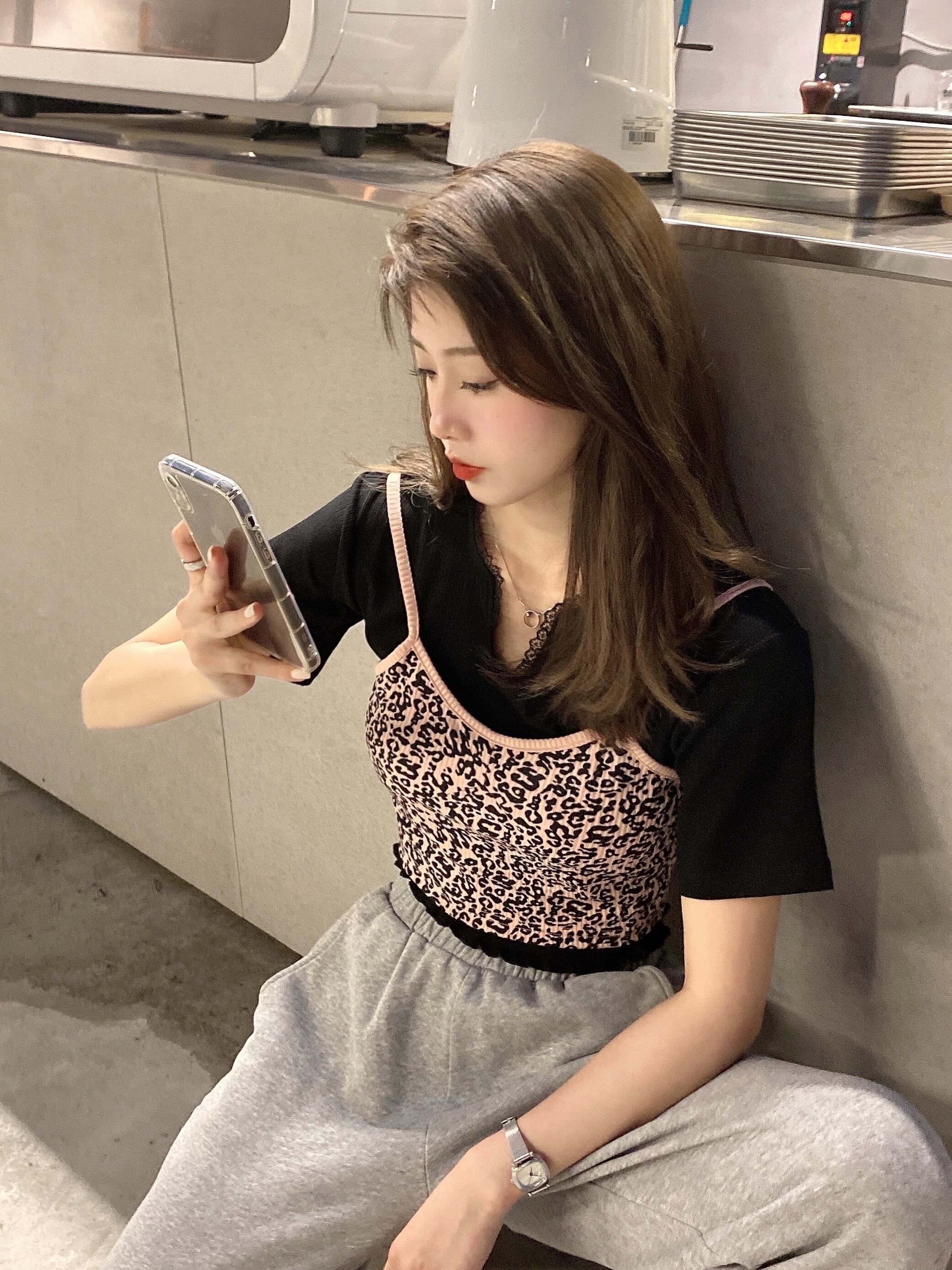 レオパードプリント柄サマーショートスタンダードジャケット ピンク レトロ 夏物 ヨーロピアン ブラックストロベリース7985715016