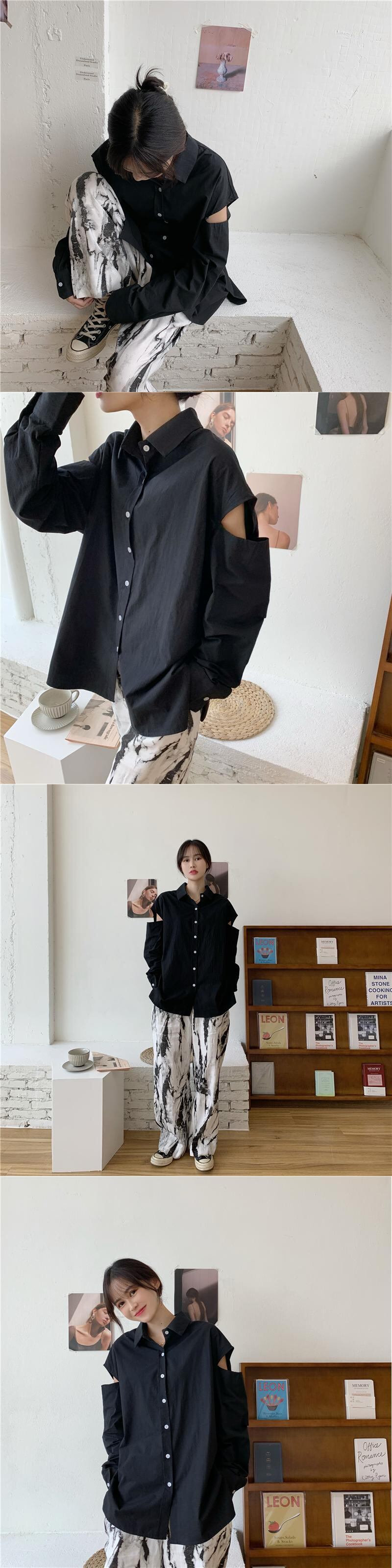 シャツ ルーズスプリングブルートップス 春物 ブラックストロベリース73656312124