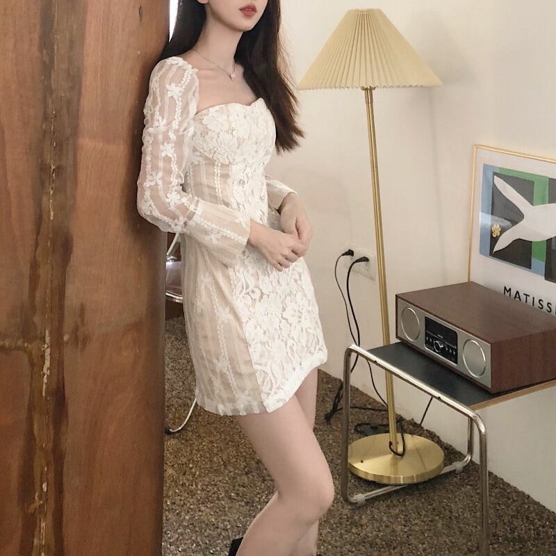 ドレス レースカラースカート スプリングホワイトウェストスリムショート ロング 春物 スクウェア ブラックストロベリース86756039501