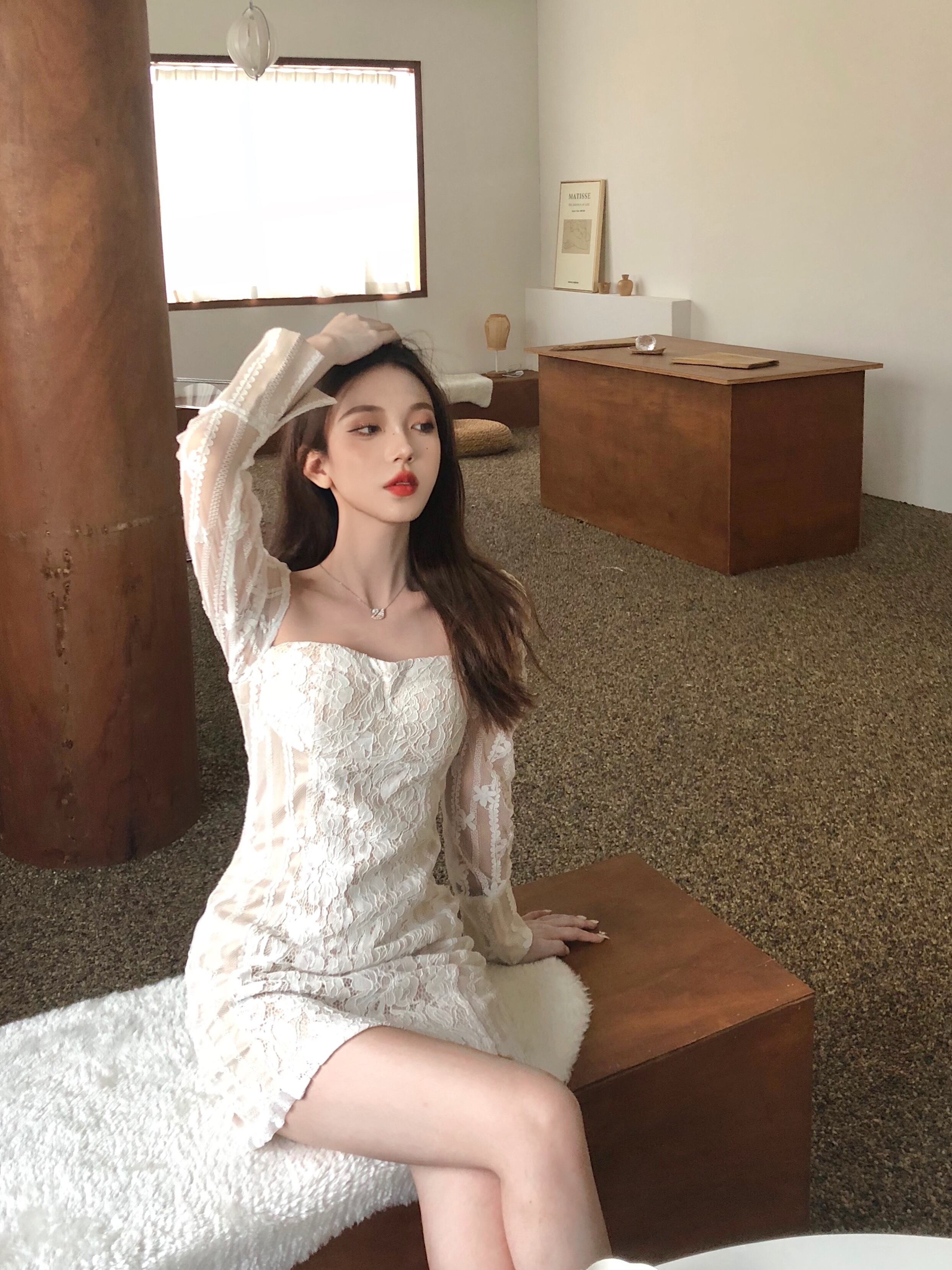 色:透明な白いレースのドレス,小さなフレグランスコート