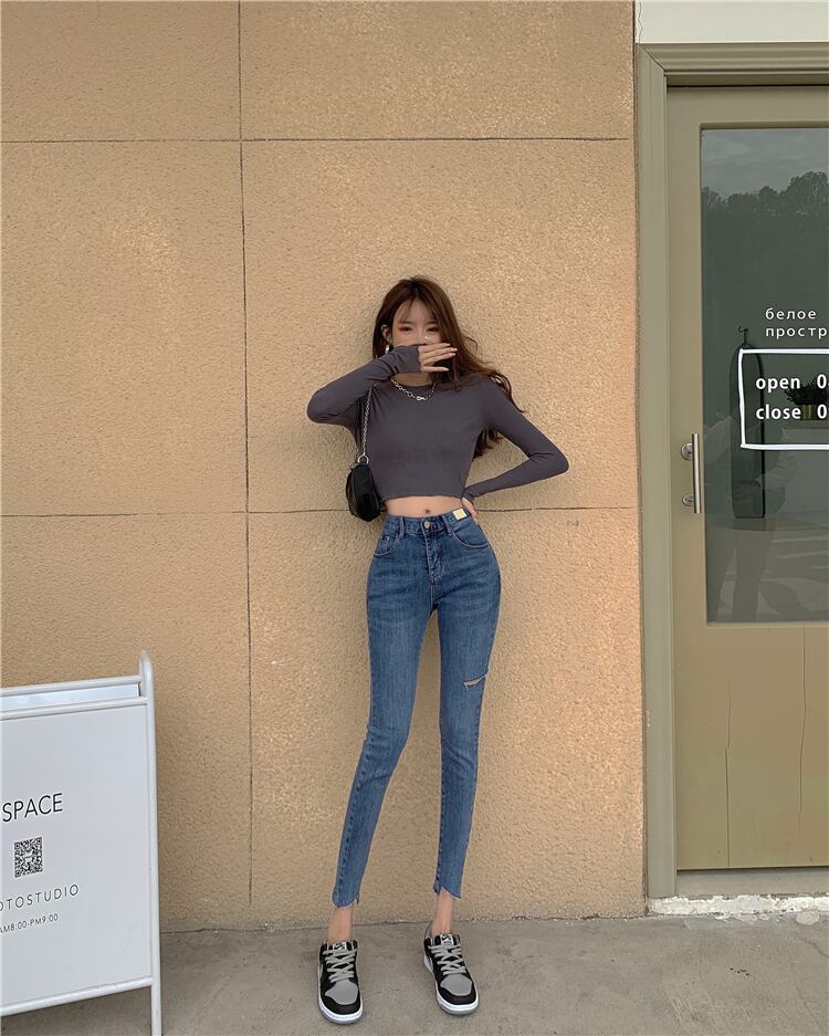 ジーンズ スプリングハイウェスト薄手ダークパンツ 春物 ブラックストロベリース20944411376